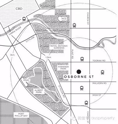 步行仅700米,即可到达超大免费公园Fawkner Park福克纳公园,占地41公顷的天然氧吧,而不远处即是The Botanical Gardens皇家植物园,居住于此,享受最纯净自然的清新空气。
